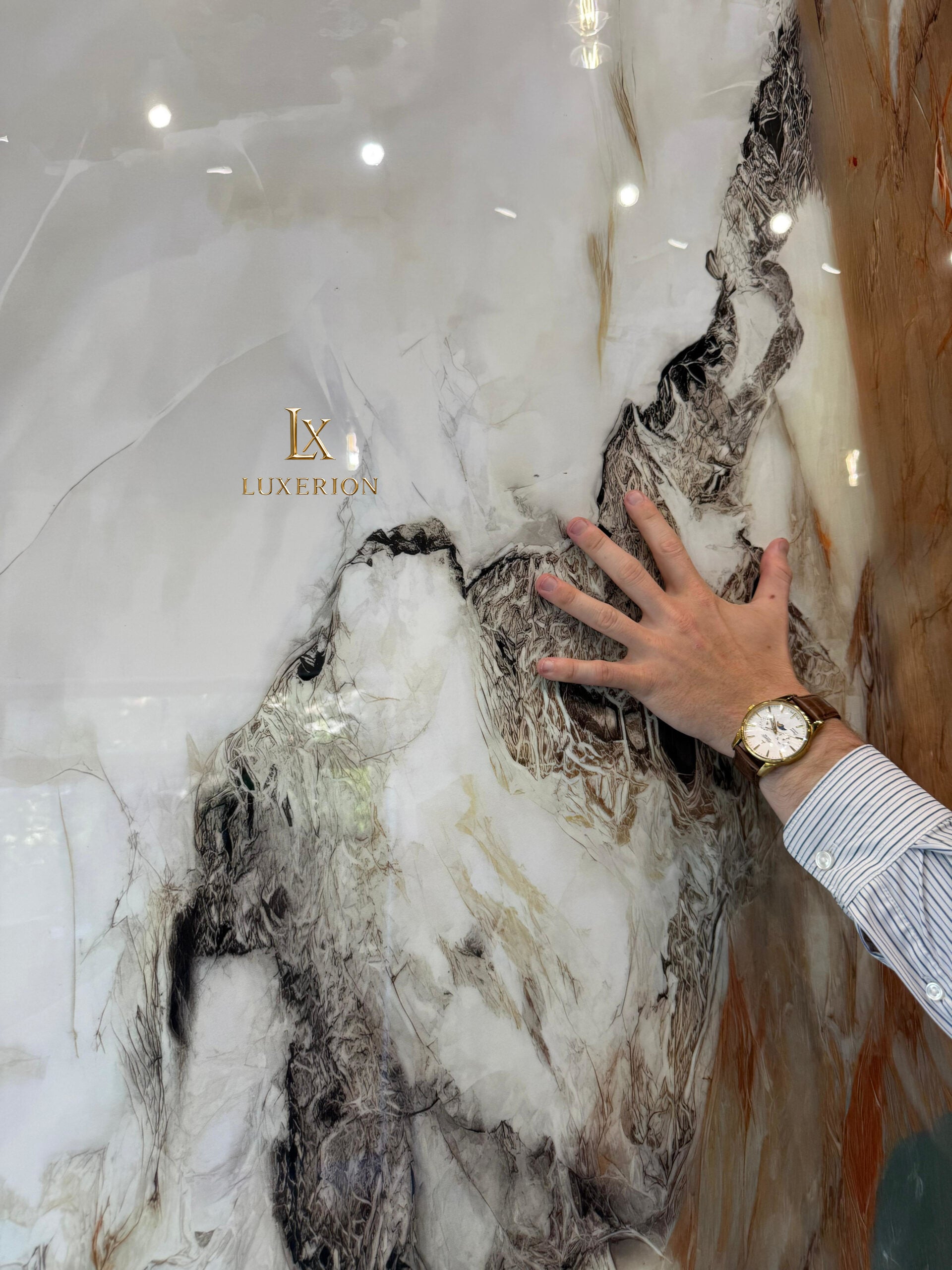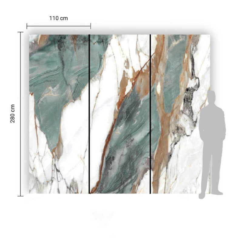 Om deze continuïteit van het patroon in voorraad te garanderen, is de volgorde waarin jouw bestelling begint willekeurig. Dit betekent dat je geen specifiek paneel uit de set kunt kiezen. Je ontvangt echter altijd panelen die het patroon perfect voortzetten, wat zorgt voor een indrukwekkend marmeren effect.